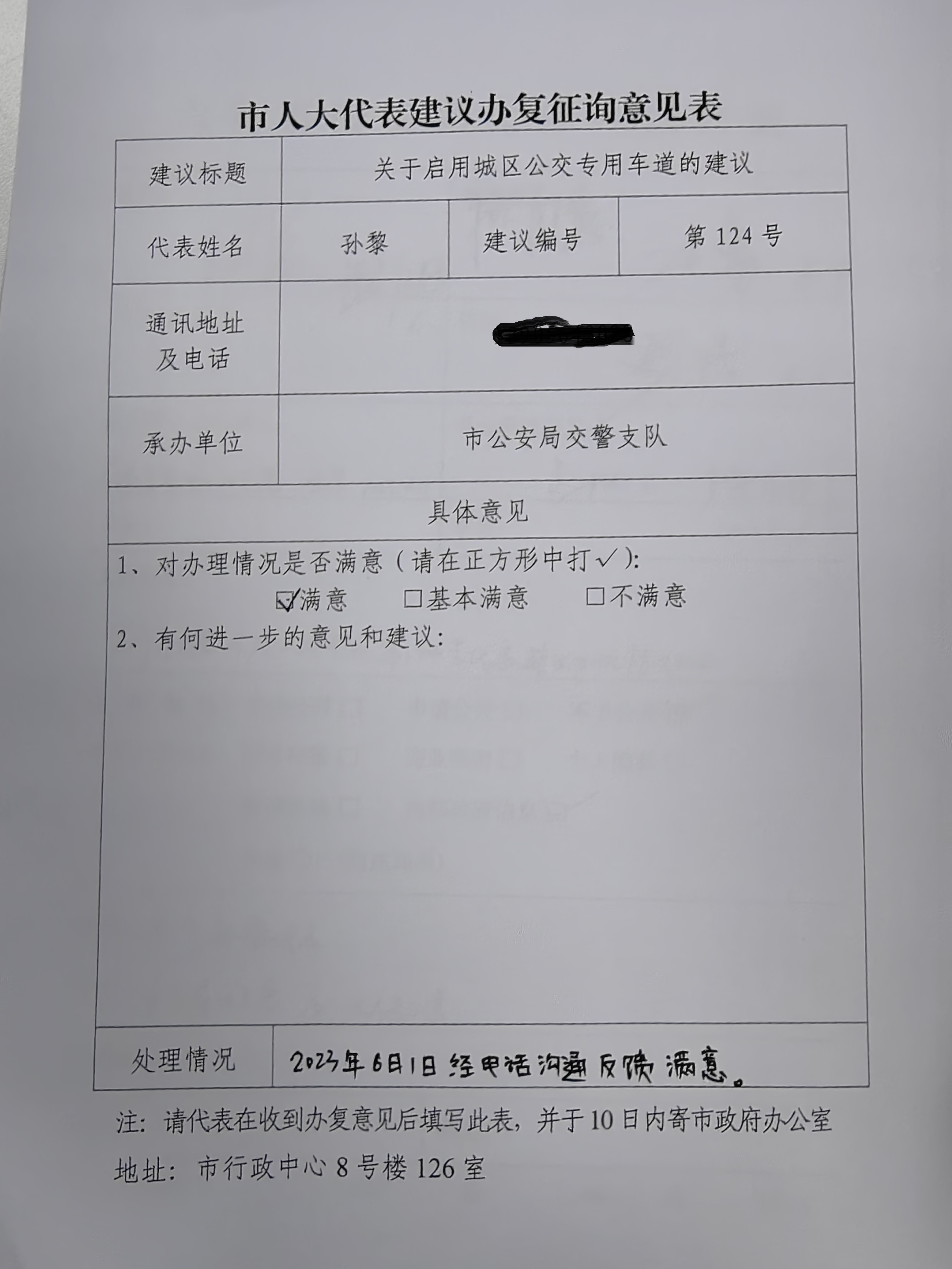 您提出的《关于启用城区公交专用车道的建议》收悉,现将办理情况答复如下: